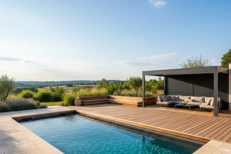 On parle ici de respecter les normes DTU, d'assurer une ventilation parfaite sous les lames pour éviter le pourrissement, et de choisir les bons saturateurs. Une terrasse signée Les Jardins du Sud, c'est une structure stable sur plots réglables qui restera impeccable, année après année, aux abords de votre piscine.